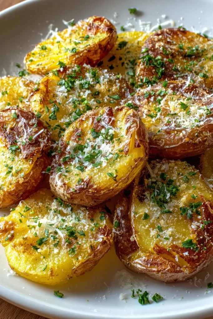 Crispy Baked Smashed Potatoes with Garlic & Parmesan