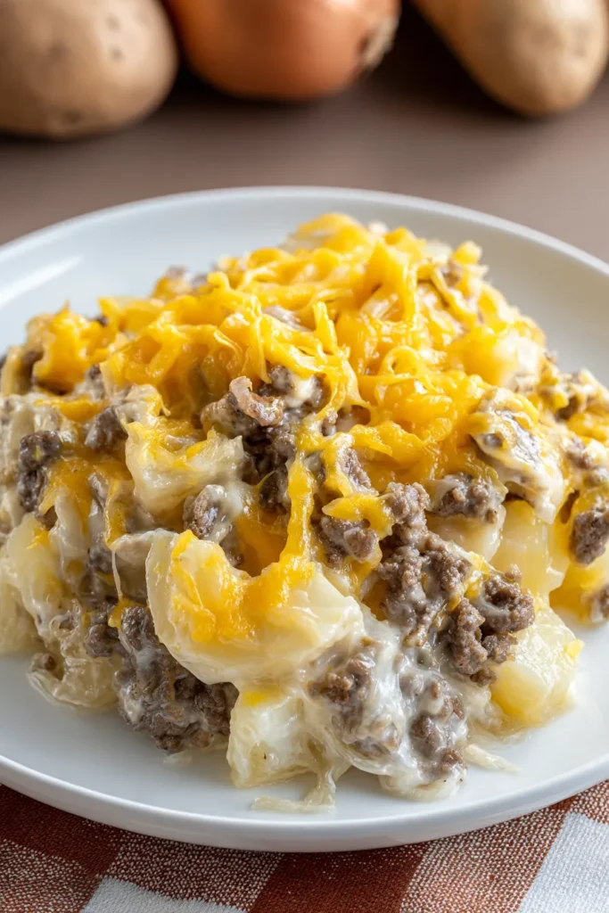 Beyond the delicious layers, what I adore about this casserole is how it weaves itself into your life. It’s perfect for those busy weeknights when you need something that practically makes itself, yet still feels like you spent hours in the kitchen. You can prepare it ahead of time, refrigerate it, and let it patiently wait until you’re ready to bake. The rest time after baking ensures that every slice holds together beautifully, so you’re not wrestling with a gooey mess on your plate. With just 20 minutes of hands-on prep and about 75 minutes in the oven, this dish offers maximum comfort with minimal fuss. Whether you’re cooking for a crowd or keeping things cozy for two, this Hamburger Potato Casserole shines bright—and it might just become your new weeknight hero.