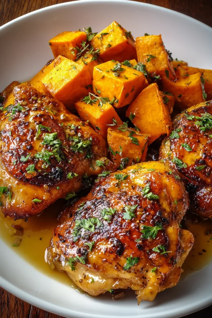 Maple-glazed chicken bursts with rich flavors and caramelized goodness, while tender sweet potatoes add a delightful creaminess. Perfect for a cozy meal!