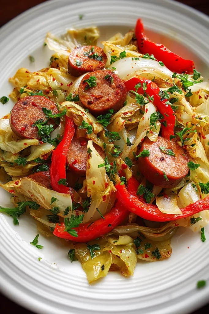 What started as a simple combination of smoked sausage and crisp cabbage has turned into one of those magic, go-to weeknight meals that feel both indulgent and wholesome. We’ve walked through every detail—from the robust, caramelized sausage slices to the sweet yet crunchy cabbage ribbons—all brought together by a tangy, savory sauce that dances on your taste buds. This recipe is versatile: you can jazz it up with extra veggies, switch to plant-based sausage, or tweak the heat level to suit your family’s preferences.