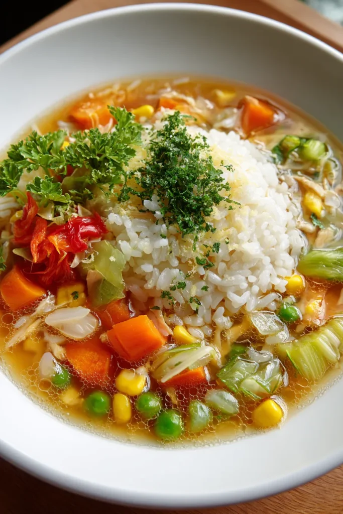 Rich and hearty, this Savory Soup Rice combines fluffy rice with vibrant mixed vegetables in a flavorful broth. Perfect for a cozy meal any time!